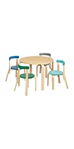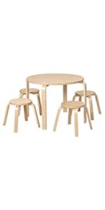 Table and Curved Back Chair Set, Kids Furniture, Natural, 5-Piece